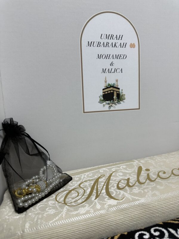 - 1 CAJA PERSONALIZADA CON TEMÁTICA DE UMRAH.